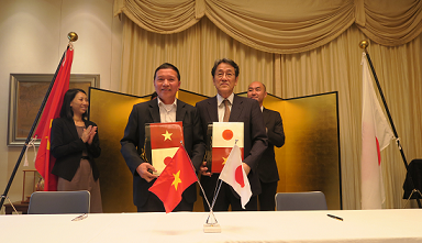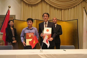 Lễ ký kết hợp đồng viện trợ cho dự án “Nâng cấp trường nội trú Lả Giôn, xã Mương Giôn, tỉnh Sơn La” và 7 dự án khác trong Chương trình viện trợ không hoàn lại cấp cơ sở của Chính phủ Nhật Bản