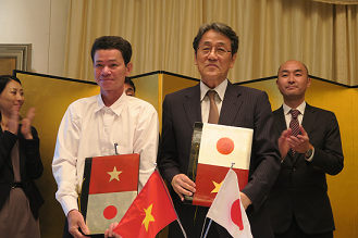 4. Tại lễ ký kết, Đại sứ UMEDA Kunio phát biểu rằng “Trong 8 dự án được ký kết ngày hôm nay, với mức viện trợ tên 640 nghìn đô, có dự án “Cung cấp trang thiết bị y tế chuyên khoa mắt do đề xuất của bác sĩ Hattori (Bác sĩ chuyên khoa mắt), “Dự án cung cấp trang thiết bị y tế” do trường đại học Kanazawa đề xuất, ngoài ra còn có các dự án như xây dựng đường giữa các bản làng để đảm bảo giao thông an toàn cho người dân và 2 dự án “Cung cấp nước sạch” được đề xuất bởi Dự án Quản lý tài nguyên thiên nhiên bền vững của JICA. Các “dự án nâng cấp trường nội trú cho dân tộc tiểu số” và 2 dự án hợp tác “Dự án xây dựng trường tiểu học” là những dự án rất quan trọng trong việc giáo dục đào tạo học sinh. Các dự án được thực hiện trên 7 tỉnh Điện Biên, Lai Châu, Sơn La, Bắc Cạn, Hòa Bình, Quảng Nam, Bình Định. Chính phủ Nhật Bản thông qua những hỗ trợ như vậy, dù ít hay nhiều luôn mong muốn cống hiến cho sự phát triển cân đối của Việt Nam. Thông qua các dự án được ký kết lần này, chúng tôi mong rằng tương lai của nhiều người dân nơi đây sẽ ngày càng tươi sáng.